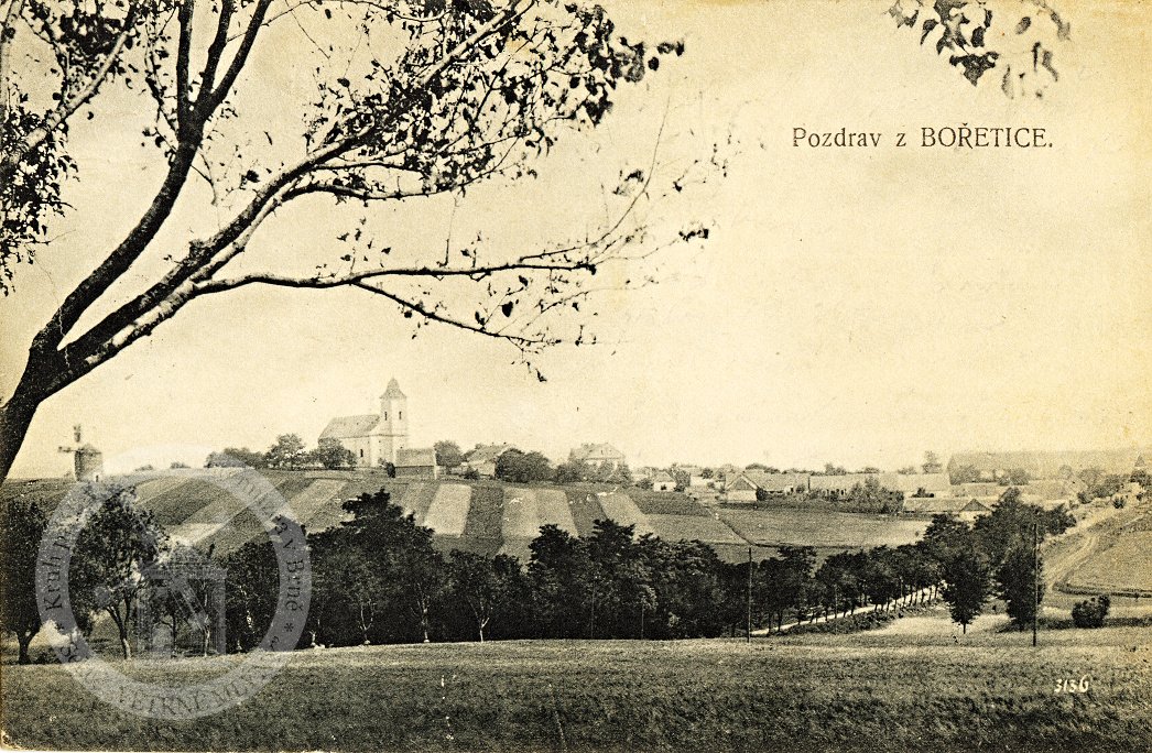 Okolo roku 1820 postavil T. Hlavňovský v Bořeticích „Na tálkách“ za kostelem větrný mlýn. Mlýn byl však odlišný než mlýny v okolí. Postaven z cihel holandského typu válcového tvaru. Pod střechou byla umístěna železná kolejnice která umožnila natáčet lopatky mlýna podle toho směru odkud vanul vítr. Hlavňovský zde mlel obilí až do roku 1860, kdy mlýn odkoupil Franc Hekerle, který zde měl živnost do roku 1880, pak větrný mlýn odprodal Filipu Kloboučkovi z nedalekých Němčiček. Ten mlýn ve stáří přenechal mlýn svému synu Jakubu Kloboučkovi. Jakub si v Bořeticích koupil dům č.p. 207. Mlynář neměl lehké živobytí. Byl závislí na povětrnostních podmínkách a navíc se v okolí objevila nebezpečná konkurence v podobě mlýnů na parní pohon (Vávrův mlýn v Čejči, Kalvodův ve Velkých Pavlovicích). Mlýny měly větší výkon a kvalitnější mouku. Větrný mlýn postupně ztrácel zákazníky, přestal být výdělečný a roku 1911 ukončil provoz. Jakub Klobouček mlýn v roce 1913 prodal za 700 K Josefu Chrástkovi z Bořetic. Větrný mlýn koupil z úmyslem, že mlýn zbourá a z cihel postaví stodolu. Sundali střechu a jaké bylo jejich překvapení, cihle byly dobré pouze z venkovní strany a dovnitř jsou zaseknuty do kónusu a střed zdiva vysypán „šuntem“. Vše se pak odklidilo a po větrném mlýnu zůstalo jen prázdné místo. Chrástkovi v roce 1919 prodali prázdnou parcelu Josefu Šafránkovi z Bořetic č.p. 94.