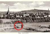 Situační schema / nákres originál firmy Kunz datovaný 26. 2. 1890. V rámečku je patrná poloha hospody, stavidla a patek stožáru větrného čerpadla., firma KUNZ, 1890 |