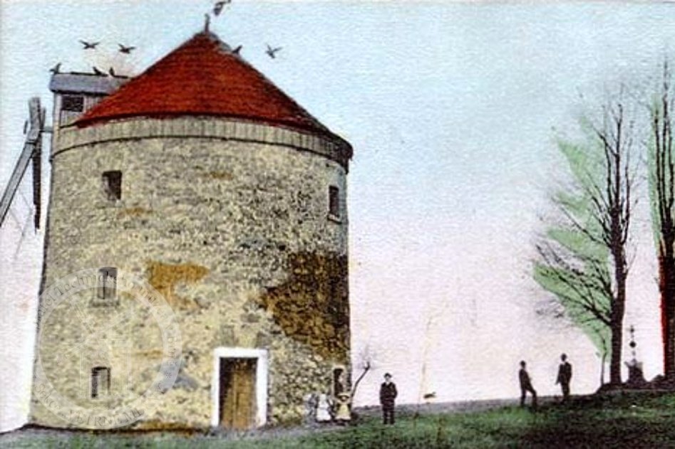 Větrný mlýn holandského typu byl postaven někdy okolo roku 1850. Více o historii mlýna nevíme. Jen v ústním podání se traduje, že ukončil činnost poté, co bylo lopatami usmrceno mlynářovo dítě. Třípodlažní budova mírně kuželového tvaru je postavena z lomového kamene, vnější průměr má 9,5 m, celkovou výšku dvanáct metrů. Střecha, dnes plechová a původně šindelová se. otáčela na válečcích pomocí převodového mechanismu a palečného kola na pozednici (jako v Horním Podluží). Mlýn měl čtyři klasické perutě. V šedesátých letech sloužil mlýn jako seník, měl snížené zdi a nepěknou sedlovou střechu. Nový majitel dostavěl obvodové zdivo mlýna do původní výšky i podoby, zhotovil odpovídající střechu a stavbu omítnul. Uvnitř je mlýn upraven na trvalé bydlení. Z vnitřního technického vybavení zůstaly dva mlýnské kameny o průměrech 70 a 86 cm a výškách 28 a 14 cm, které leží před mlýnem. V současné době je připraven projekt na obnovu perutí. Mlýn je nádhernou krajinnou dominantou.