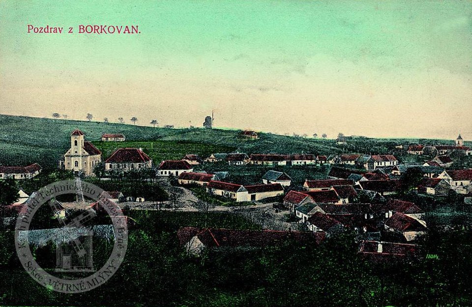 Před šedesáti pěti lety zmizela zdaleka viditelná borkovanská dominanta, starý větrný větrák. Necelých 100 roků vítr severák, polák či ze které strany foukal, poháněl lopatky tohoto mlýna. Když vítr ustal, odpočíval, když foukal, mlel i v noci. Vodní mlýny na tom byly lépe, ale kde vzít v Borkovanech tolik vody, aby mohla pohánět mlýn. Ty potůčky ze Štočka a ze Záhumen stačily tak akorát doplňovat haltýř pod dědinou, aby jej nevypil z celé obce se tam pasoucí dobytek. Obilí jako hlavní zdroj obživy a krmiva pro domácí zvířata, nutil obyvatele jezdit mlet a šrotovat do okolních i vzdálených míst. Nejblíž byl těšanský Hastrmánek a dále mlýnky v Hostěrádkách a Bohumilicích. Ale malý potok, malý mlýnek a tak mletí tam trvalo dlouho a někdy také vody nestačilo. Jezdilo se až do Židlochovic, Rajhradu a dalších vzdálených míst. Větrák byl skoro v každé dědině, ale jeho kapacita stačila tak akorát pro místní obyvatele. Staré mlynářské povolání bylo velmi rozšířené a potřebné, majitelé mlýnů patřili mezi zámožnou a váženou skupinu obyvatel. Ovšem to se týkalo pánů otců ve mlýnech, kde zaměstnávali několik několik pracovníků, a ne mlynářů na větřácích či klepáčích někde na potůčku. Ti byli rádi, když uživili rodinu. A přece se i v Borkovanech našel podnikavec, který se odhodlal postavit zde větrák. Jmenoval se František Pivoda z č. 80 a nebyl v té době již nejmladší, měl na krku pět křížků a třetí ženu. Že se vyznal v ekonomice, můžeme usuzovat z toho, že všechny ženy si bral jako vdovy. Ta první Marie Langrová byla o pět roků starší než on (poprvé se vdávala v 15 letech), druhá byla Anna Šebestová a třetí Marie po Jiříčku Pivodovi (rod Pivodů byl té době v obci dosti rozšířen, bylo zde více než 10 rodin). Kolik se kterou vyženil jsem nezjišťoval, ale jistě si vše dobře spočítal.